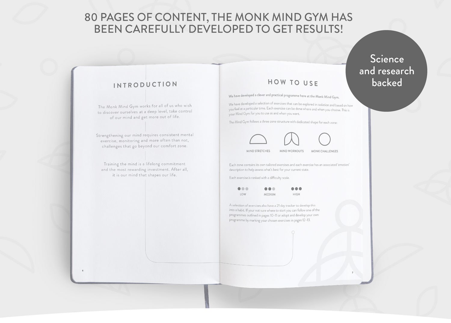 Training the mind is a lifelong commitment and the most rewarding self-investment. Through Monk Mind Gym, you'll discover practices and strategies for daily application, cultivating more mental space and making better decisions in your daily life.